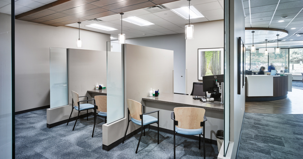 At 17,000 square feet, the new clinic for Madison Oral Surgery and Dental Implants (MOSDI) is located on the first floor of Landmark Oaks, a new class A office building also designed by Potter Lawson. This clinic includes 15 treatment rooms, 7 recovery rooms, sterilization suite, along with space for administrative functions including business office, conference rooms, storage and staff break and locker rooms.
